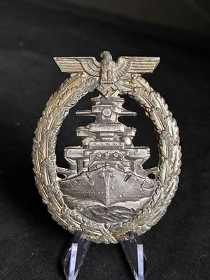 Schwerin,Berlin.mid to late war solid zinc Flottenkriegabzeichen with Schwerin maker marks.remains in excellent worn condition with nearly all the silver plated finish on the ship and reverse and some of the gold finish on the wreath.excellent KM badge.Click on pay by credit card to activate after pay