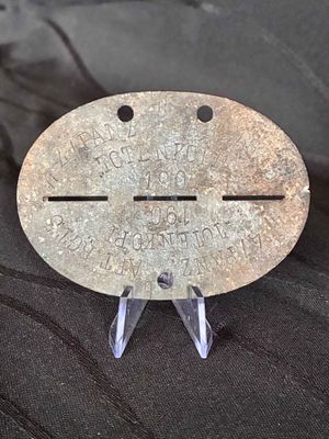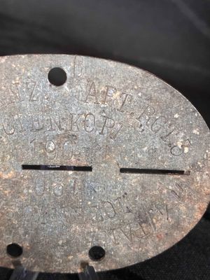 SS Artillery regiment TOTENKOPH dog tag.Zinc tag reads SS 4/ PANZ ART RGT3 TOTENKOPH.with roll number and blood type.Very nice condition and hard to come by especially being Artillery. Click on pay by credit card to activate after pay.