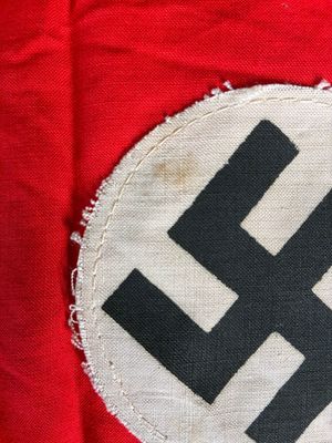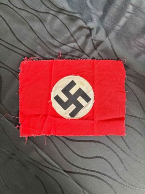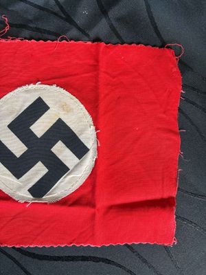 Measuring approximately 30cm by 25 cm.was cut out of a flag by American veteran and brought back to the USA supposedly.i was told you buy the item not the story.Tidy little cut out with no holes or marks.