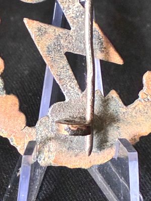 definitely ground dug,cannot see maker mark but can see where eagle has been riveted on.Might come up better than this with a light careful clean. Click on pay by credit card to activate after pay