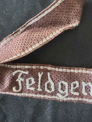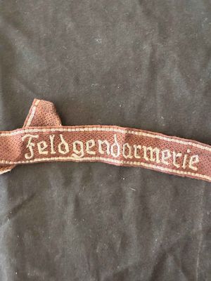 Reproduction Silver thread woven cuff title featuring the 'Feldgendarmerie' script, which were worn by members of the German Field Police during WWII