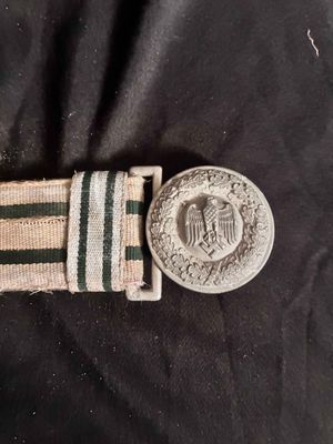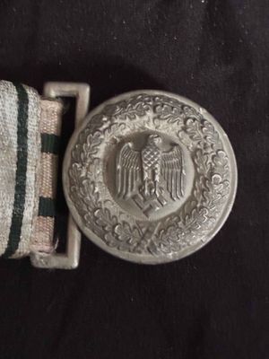 German Heer Officer Brockade Belt & Buckle Original German Heer officers wire brockade belt & Buckle set. Belt is well worn with some fraying. Leather tongue is complete.Buckle and aluminium fittings ok for age,there is however some signs of corrosion. Click on pay by credit card to activate after pay.