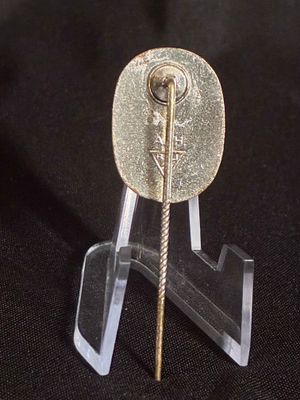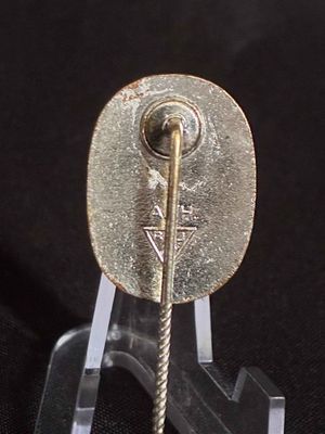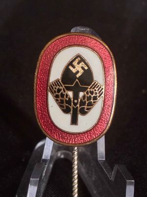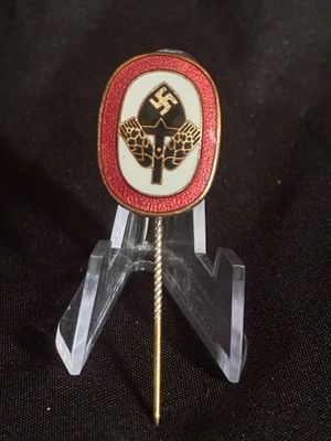 BADGE WWII GERMAN RAD MEMBERS COMMEMORATIVE LAPEL PIN. HALLMARKED ON THE BACK “ATH” WITH A TRIANGLE SYMBOL BELOW. SHOWS LIGHT USE AND WEAR.