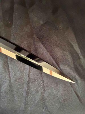 the Stoker edged weapon firm, a company renown for quality with their fantastic wares. The solid Trolon grip has turned an attractive dark orange .The material remains in excellent condition, devoid of any chips, splits, cracks or missing material.the handle has been wrapped with a strand of decorative springy wire.