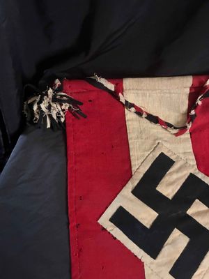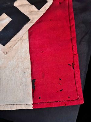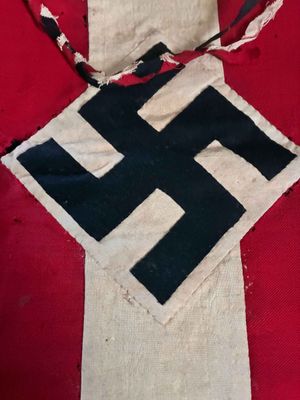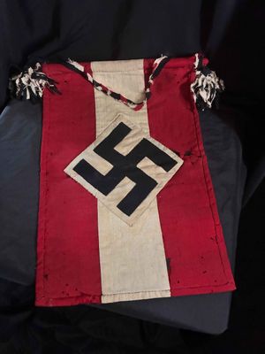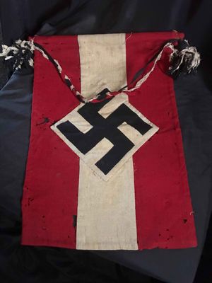 28cm) This is authentic and unique banner made with multi-pieced construction. White cotton diamond sewn on in the middle with a black swastika sewn onto it, which is on both sides.