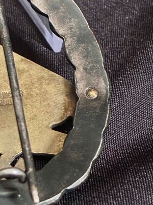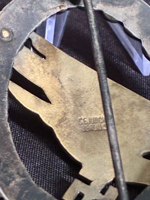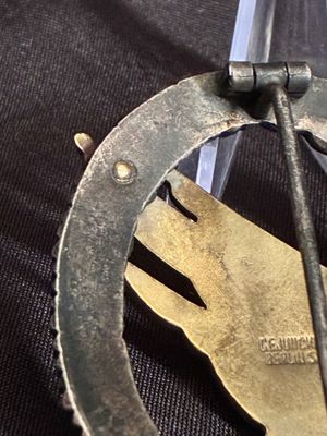 Typical Juncker rivets are holding the eagle tightly in place and stamped C.E.Juncker Berlin S.W to reverse. .hinge and pin in perfect working order.