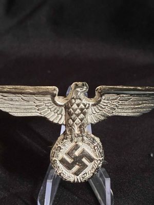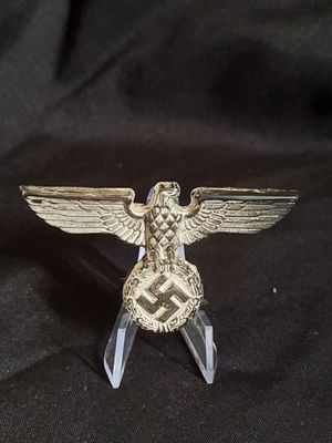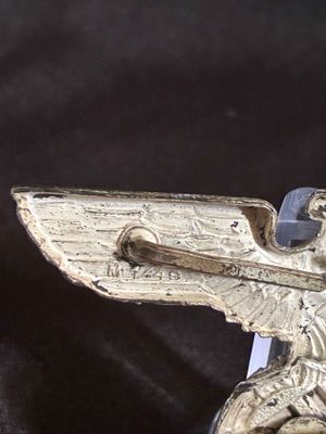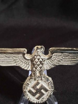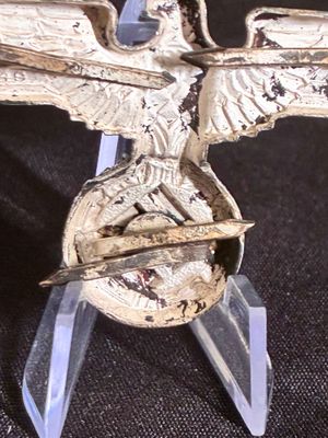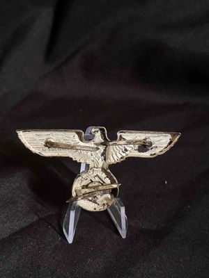 NSDAP cap eagle produced in tombak. This eagle is RZM marked on the back and has all 3 prongs remaining