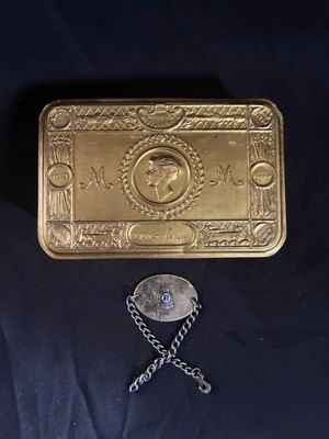 WW1 Princess Mary Christmas Tin & Canadian silver ID Bracelet.