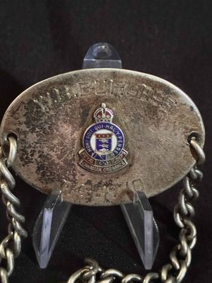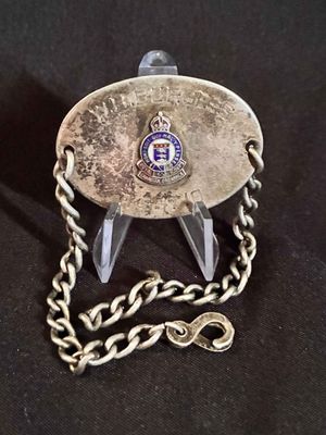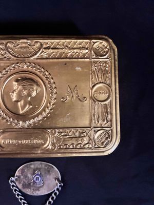 WW1 Princess Mary Christmas Tin & Canadian silver ID Bracelet. Tin is in brass, featuring the Allied countries on the lid. A silver ID tag bracelet Disc bears the enamelled insignia of the Royal Canadian Ordnance Corps and engraved W.R. BURGESS A-59710, back is plain and marked STERLING…
