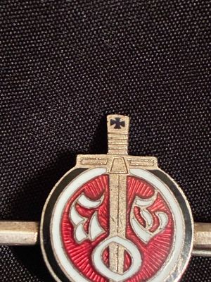 .German Officers Association (DOB) Membership Badge. Founded in 1918 and worn up until end of ww2.Constructed of silvered bronze and red, white, and black enamels,with the letters DOB.Pin and catch in good order.unmarked