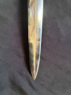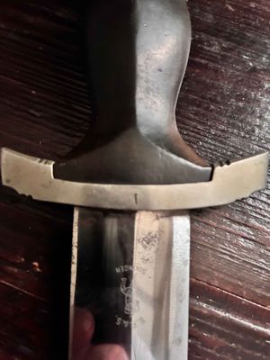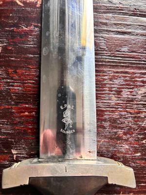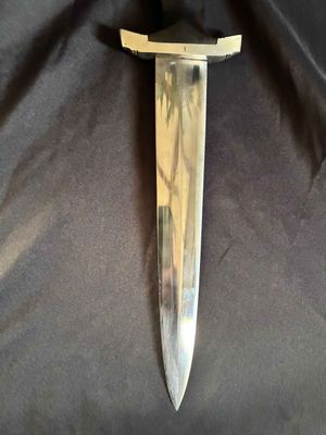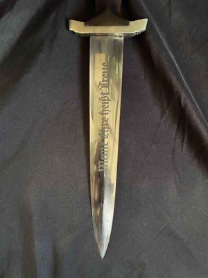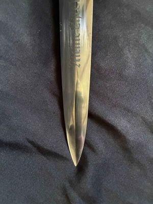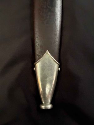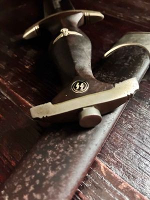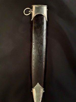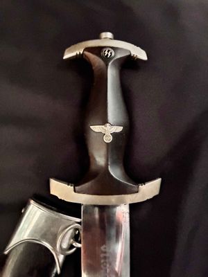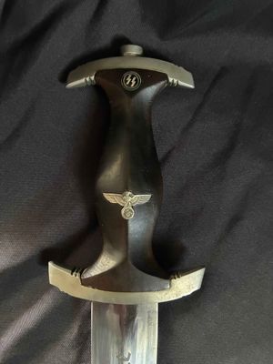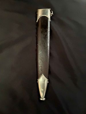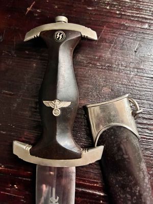 Early Untouched SS dagger by E .Pack. Bought back to the USA after the war in the same condition as you see it now.The dark wooden grip is near perfect.Both the high neck nickel eagle as well as the SS runes are in very good condition. Both upper and lower crossguards are smooth , while taking on a golden undisturbed patina over the years. The scabbard to this Pack SS dagger is in good plus condition,but does show some mild oxidation but has no dents scratches or any signs or refurbishing.Both nickel fittings remain tight and in excellent order. The blade remains full length, straight, void of any polishing, buffing, tipping, sharpening, or cutting-edge chips.The dark well etched motto which sets this dagger off along with the superb wooden grip. Earnst pack factory did not produce a lot of early SS daggers was more known for SA daggers.This SS dagger presents itself in same way as the last SS soldier who owned it.price is firm.Free shipping…….