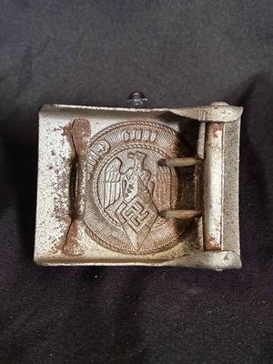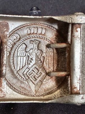 Hitler Jugend Belt Buckle …. This belt buckle shows wear and scratches to the front and oxidation on the reverse.The buckle retains it's prong bar, prongs and catch, as well as it's RZM paper tag that has been torn into three pieces…click on pay by credit card to activate after pay