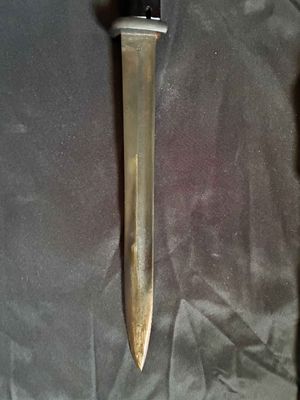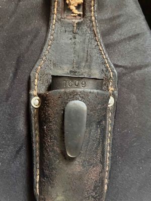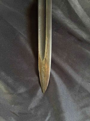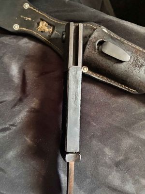A nice bayonet marked 42 asw indicating production by E. & F. Horster & Co. Solingen. The blade has not been sharpened retaining up to 90 %of its original blueing. The bayonet has nice clean bakelite grips showing minimal wear.scabbard has some dents and normal wear from use.Frog is maker marked along with nice other markings to every other component.Good looking bayonet click on pay by credit card to activate after pay