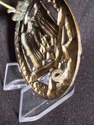 Tombak (Scarce)…. high quality early production badge.Some silver finish missing.Correct pin assembly.Nice and sort after Assault badge.click on pay by credit card to activate after pay.