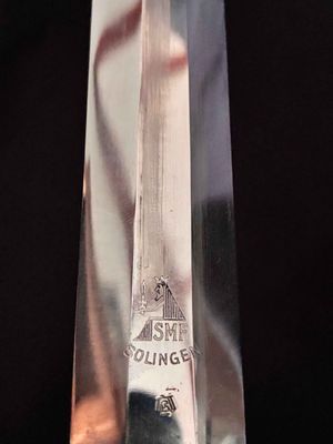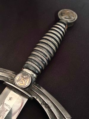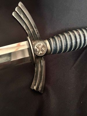Early Ist Model Luftwaffe Dagger….. Early Ist Model Luftwaffe Dagger in a very nice aged condition.. The blade on this one is just about mint with mirror like nickel plated finish,amazing really for its age.The reverse of the blade is well-marked, with the seated knight "SMF" logo indicating manutacture by the firm of Stocker & Co. It is also stamped with a "Luftamt 5" Luftwaffe inspection stamp. The handle on this one is very good and features early nickel silver fittings, with deep and very dark appealing age patina.