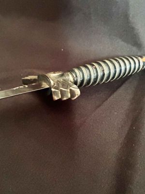 The leather grip wrap is very good condition, showing only minor wear, and retaining nearly all of the original surface. The grip wire is nice and tight.This Luftwaffe dagger is complete with its original scabbard, with perfectly matched dark nickel silver fittings. The leather scabbard wrap is completely intact and shows only normal wear and handling marks. The scabbard retains its original nickel chain with dark patina matching the scabbard fittings.This dagger has a wonderful overall look and remains in excellent condition overall.