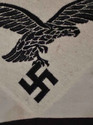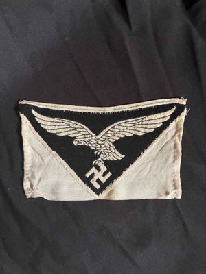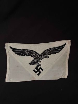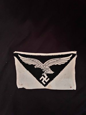INSIGNIA………This is of a smaller size Luftwaffe insignia for an athletic shirt. It measures 13.97cm wide by 8.25cm tall. It is machine embroidered onto a piece of white badge cloth,looks to be unissued so is in very good condition.click on pay by credit card to activate after pay.