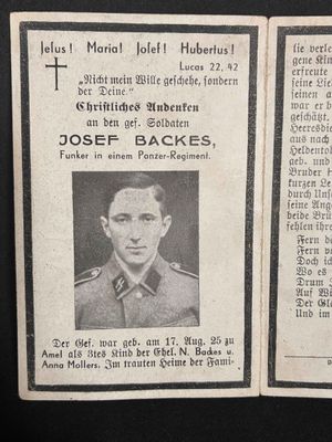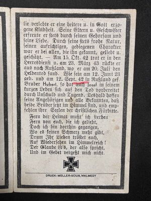 3. Kompanie/ SS-Panzer-Regiment 5 "Wiking" as a Funker.He was killed when his tank was hit .He was born in Amel, Belgium!