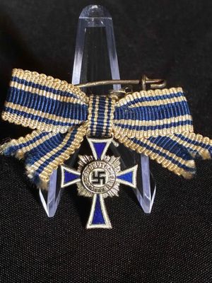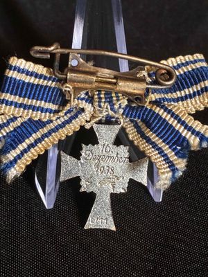 German Mother cross Silver Grade miniature….constructed of silvered bronze with multi-coloured enamels, marked with LDO code "L/11" for Wilhelm Deumer, Lüdenscheid.Click on pay by credit card to activate after pay