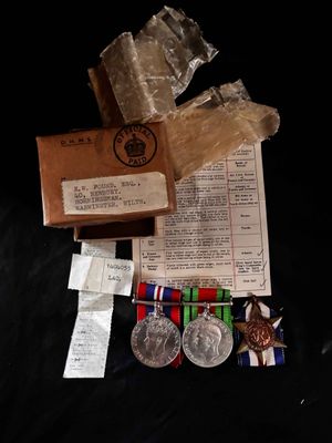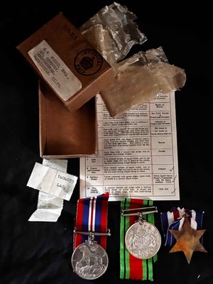 on a paper slip. I have not researched this.,Having the France Germany star might well give some interesting details to his service.Medals are still in wax paper packets.Nice to have medals and documents all together in original issue box..click on pay by credit card to activate after pay.