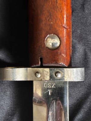 The ricasso is stamped with a Z inside a circle. This marking often indicates that the bayonet was made at the Brno factory.