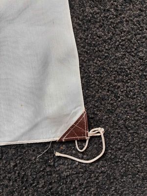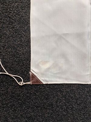.slight fraying to one edge otherwise mint .soft, smooth white bunting material with a red meatball that is printed showing on both sides.
