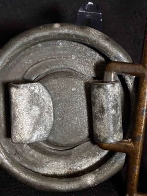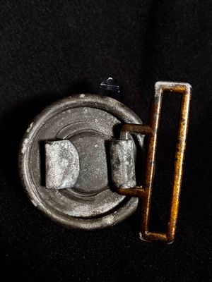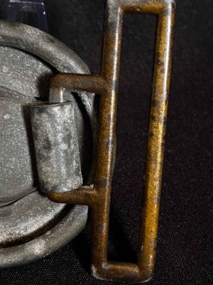 Buckle…The buckle is made of zinc with a gold wash finish applied to it. The finish is mostly intact, and has taken on a bronze color. The reverse clasp remains intact and is without damage or repairs.
